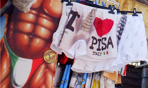 Υπάρχει ένας σκληρός ανταγωνισμός για το πιο φτηνιάρικο βραβείο στην Πίζα. Ανάμεσα στους «διαγωνιζόμενους» είναι η ποδιά που δείχνει τον γυμνό David του Μικελάντζελο και τα εσώρουχα I Love Pisa.